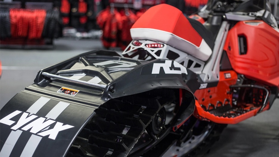 Задняя подвеска PPS²-3500-R была модернизирована для улучшения баланса. Передний рычаг теперь расположен выше, что позволяет использовать более длинный ограничитель подвески. Это увеличивает ход подвески и, следовательно, проходимость снегохода в сложных условиях.